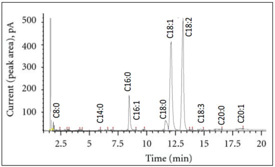 Fatty acid composition is an essential indicator of the nutritional value of the oil. The extracted seed oils were analyzed by GC-FID, and the proportions of fatty acids were determined (Figure 2).