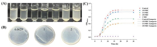 The minimum inhibitory concentration (MIC) and minimum bacterial concentration (MBC) were determined by a ten-fold dilution method. All test tubes were incubated in a 45 °C incubator for 24 h. The MIC was the lowest concentration in all test tubes where turbidity is not visible to the naked eye. The subcultured samples were plated on AAM agar medium and incubated at 45 °C for 48 h for observation. The lowest concentration at which no bacterial growth was visible to the naked eye in all plates was the MBC [].