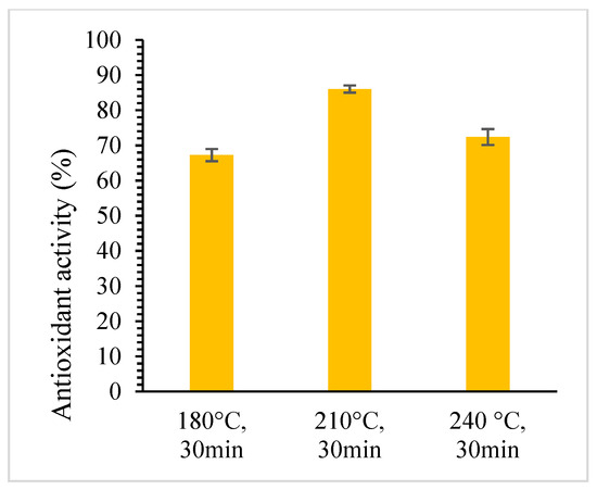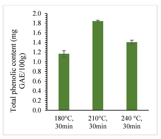 | 210 °C, 20 min | 1.266 ± 0.292 | 0.043 ± 0.000 | |