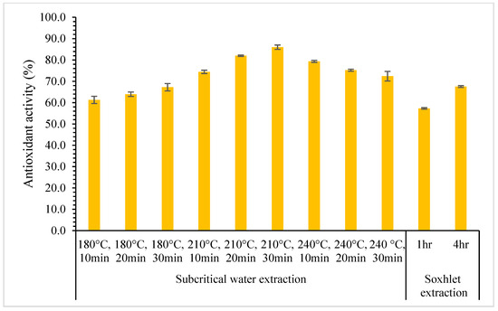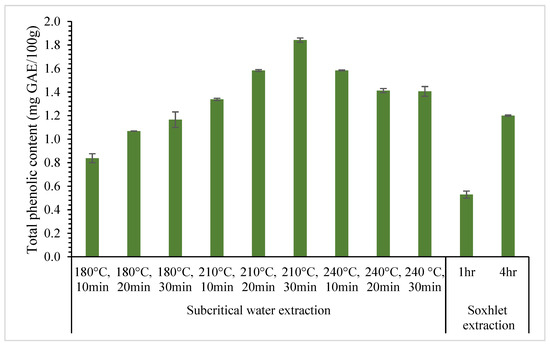 3.3. Comparison between Subcritical Water Extraction with the Soxhlet Extraction