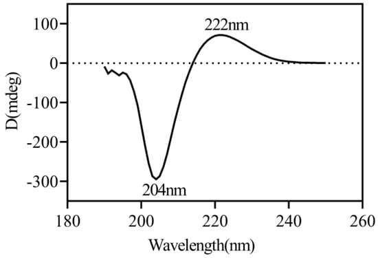 As Li et al. [11] described, the CHC was prepared in 0.5 mol/L glacial acetic acid at a concentration of 0.3 mg/mL. The sample was detected at intervals of 2 nm in the 190–250 nm using the Jasco J-815 system (Japan Spectroscopic Company, Tokyo, Japan).