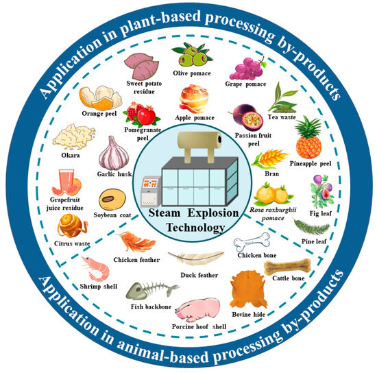 Application of steam explosion technology in plant-based processing by-products.
