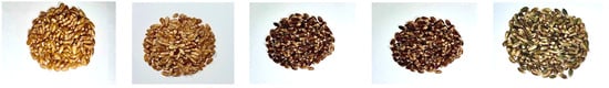 - Saini, P.; Kumar, N.; Kumar, S.; Mwaurah, P.W.; Panghal, A.; Attkan, A.K.; Singh, V.K.; Garg, M.K.; Singh, V. Bioactive compounds, nutritional benefits and food applications of colored wheat: A comprehensive review. Crit. Rev. Food Sci. Nutr. 2021, 61, 3197–3210. [Google Scholar] [CrossRef]