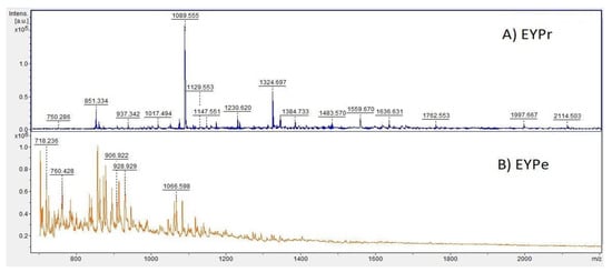 Mass spectra of (A) EYPr; (B) EYPe after two-step hydrolysis with a 1:10 E:S.