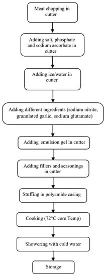 Figure 1. Flowchart of the process for the industrial production of Bologna sausages.
