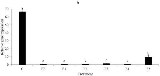 Figure 1b depicts the effects of PI-added diets on fads2 gene expression in SPWL. The fads2 mRNA expression followed the same pattern as the Δ5 + Δ6 desaturase index. The supplementation of any PI to a regular diet lowered the expression of the fads2 gene in SPWL when compared to the control diet (p < 0.05). There was no notable variation in fads2 gene expression among SPWL fed the F1, F2, F3, and F4 diets (p > 0.05), but the level was slightly increased in those fed the F5 diet (highest PS content of 20%) (p < 0.05). It should be noted that extremely low amounts of long-chain PUFAs with more than 18 carbons, particularly EPA and DHA, were found in all SPWL fed various diets (Table 4), which was highly related to the low levels of all FA metabolism indices and fads2 gene expression. According to Mattioli et al. [60], despite high amounts of ALA added in feeds, Tenebrio molitor larvae were virtually unable to generate long-chain fatty acids de novo. The PUFAs in the feed were simply bioaccumulated by the larvae, which converted roughly two-thirds of PUFAs into SFAs such as lauric or myristic acid. In conclusion, diet composition had no effect on the FA-related enzymes of SPWL, and the presence of FAs in the larvae was primarily attributed to the FA composition of the diet. This also confirmed the critical role of FAs found in PIs for improving essential FA concentrations in SPWL.