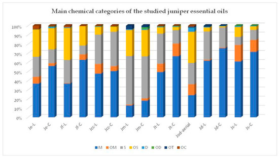 - Avci, A.B.; Nebi, B. Variation in essential oil content and composition of Crimean Juniper (Juniperus excelsa) berries during the growth periods. J. Essent. Oil Bear. Plants 2014, 17, 478–485. [Google Scholar] [CrossRef]