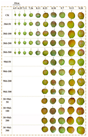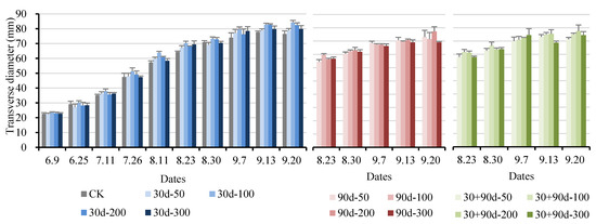 Changes in fruit transverse diameter for different MT-spraying schemes.