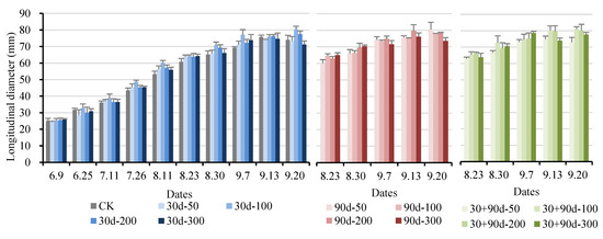Changes in fruit longitudinal diameter for different MT-spraying schemes.