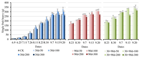 Changes in single fruit weight for different MT-spraying schemes.
