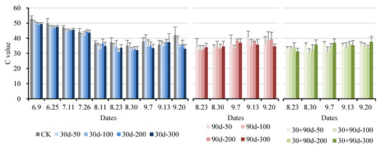 Changes in fruit C value for different MT-spraying schemes.