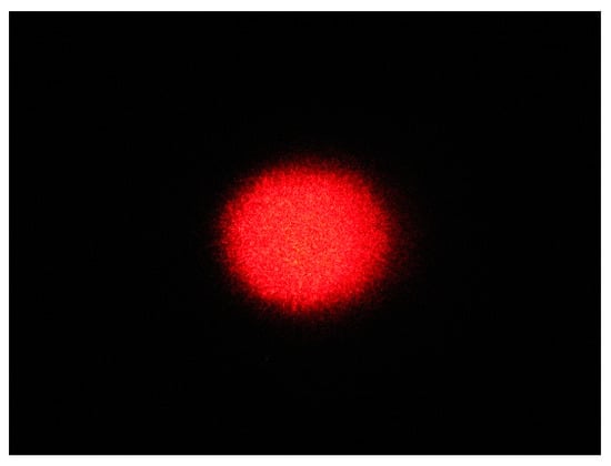 The original laser spot image of the extruded pork jerky is shown in Figure 7. Close examination of the laser spot image reveals a granular, irregularly distributed red scattering spot, known as laser speckle noise. The presence of this noise inevitably reduces the clarity of the image and seriously affects the reliability of the internal information extracted from the laser spot image. Therefore, further image processing is required to obtain reliable orientation results [41].