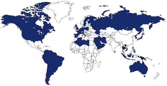 Geographic distribution of the main tuna product markets by country, as reported by the participants of the survey (n = 32).