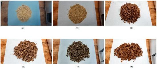 De-oiled seedcakes from (a) sesame; (b) pumpkin; (c) flax; (d) milk thistle; (e) hemp and (f) cumin.