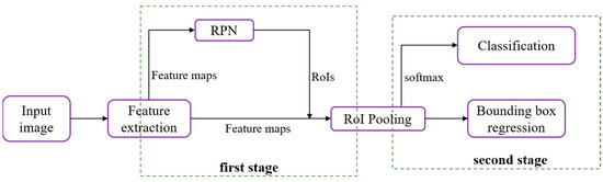 The structural design of the two-stage approach, featuring the Region Proposal Network (RPN) and Region of Interest (RoI).