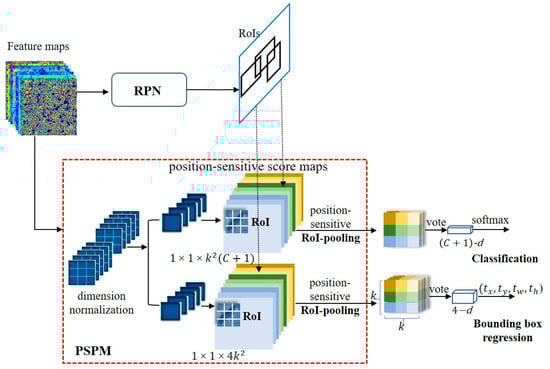 Illustrated in Figure 6, the computation involves a shared feature map between the Region Proposal Network (RPN) and the Position-Sensitive Prediction Module (PSPM). Following this, the RPN module suggests Regions of Interest (RoIs), while the PSPM module evaluates category scores and conducts concurrent bounding box regression using these RoIs as a foundation. Notably, there are no trainable layers following the RoI stage, resulting in nearly negligible computational overhead for region computation and leading to accelerated speeds in both training and inference phases.