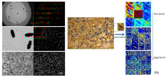 - Cao, Y.; Zhang, C.J.; Chen, Q.S.; Li, Y.Y.; Qi, S.; Tian, L.; Ren, Y.L. Identification of species and geographical strains of Sitophilus oryzae and Sitophilus zeamais using the visible/near-infrared hyperspectral imaging technique. Pest Manag. Sci. 2015, 71, 1113–1121. [Google Scholar] [CrossRef]
