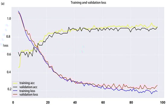 The accuracy and loss function values of the models under FD pretreatment are shown in Figure 5. With an increase in the epoch number, the accuracy of the test and training sets of the three CNN models reached stability with the accuracy of fusion spectra higher than for single spectra, and exhibited a quick convergence of the loss function value. For all the models, the overfitting phenomenon was not significant, and the results are reliable. Additionally, the model also showed good robustness and a strong generalization ability overall.
