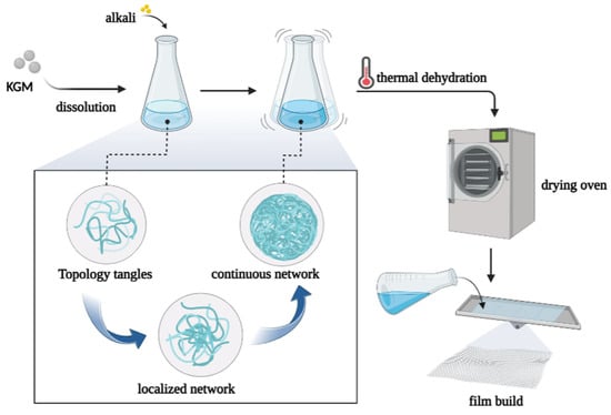 Alkali treatment causes the molecules of KGM to gather and form gels, which are then heated and dehydrated to obtain thin films.