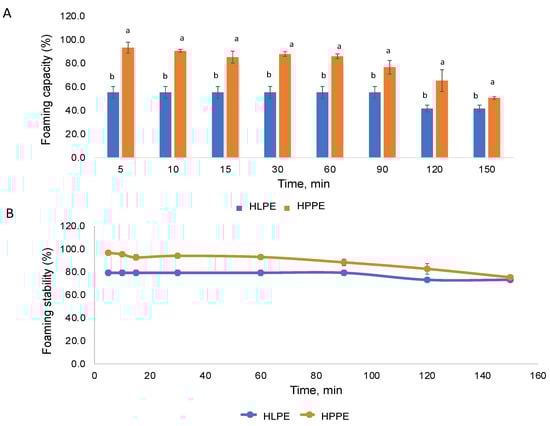 | Emulsion capacity (%) | 82.2 a ± 1.9 | 77.8 a ± 4.8 | |