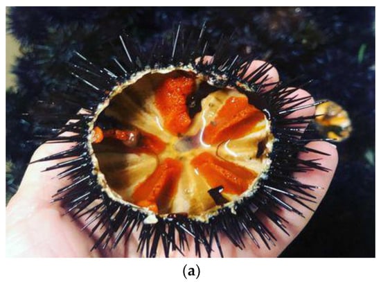 Users of sea urchin include not only the local inhabitants of the production areas but also tourists, whose demand has played a decisive role both in determining the increase in volumes and in the expanding periods and methods of consumption [5]. The taste of its gonads (the edible part) is appreciated all over the world [1]. Moreover, the semi-finished product obtained from the removal of the gonads, their packaging, and subsequent sterilization in glass containers [6] guarantees greater profitability than the sale of the hedgehog sold for fresh consumption.