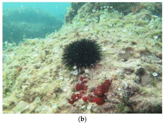 Photos of sea urchin from the Apulia region (southern Italy). Paracentrotus lividus (a) is also commonly referred to as the “edible female hedgehog”. The “male” or “black” hedgehogs (b) are none other than species of Arbacia Lixula. In Puglia, although the same applies to many other Mediterranean countries and to the parts of Spain and France bordering the Atlantic, the hedgehog that is harvested and consumed is the Paracentrotus Lividus, otherwise called “purple hedgehog” for the widespread presence, in its populations, of specimens whose spines show, precisely, a color tending to violet. Source: photos provided by Meliadò Eleonora, 2021, project “TuGePlAl” funded by the Apulia region (Appendix A).