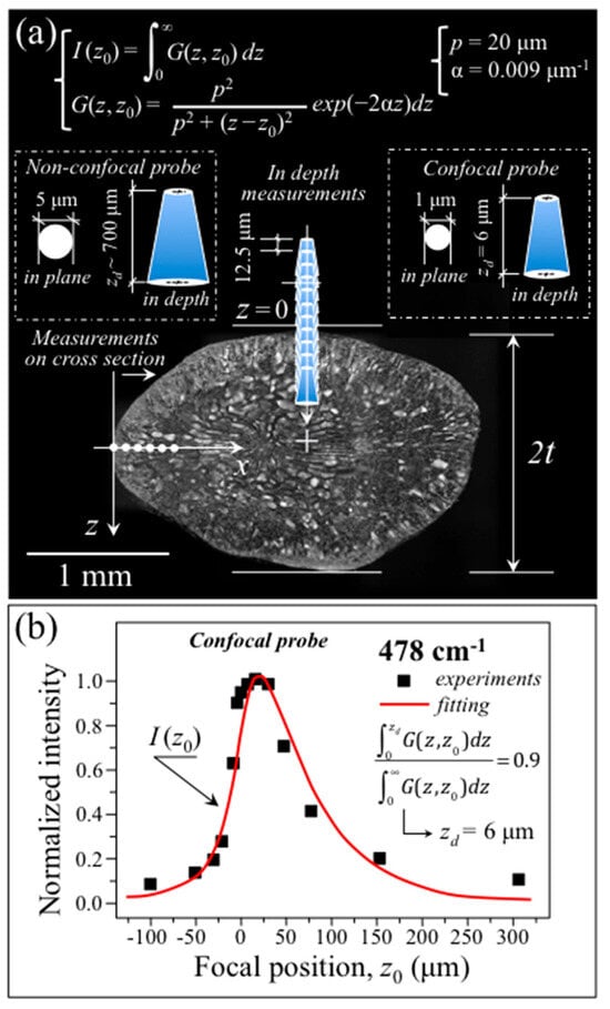 - Pezzotti, G. Spatially resolved Raman and cathodoluminescence probes in electronic materials: Basics and applications. Phys. Stat. Sol. A Appl. Mater. 2011, 208, 976–999. [Google Scholar] [CrossRef]
