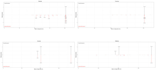 Comparison of secondary spectra of soluble sugars. Note: Below the horizontal axis (red) is the secondary spectrum of the target of the substance of interest, and above the horizontal axis (black) is the secondary spectrum of the substance collected on the tissue.