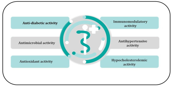 The global food market is undergoing a dynamic transformation as a result of accelerating climate change, the depletion of natural resources, and the growing population. Currently, the main trends observed in the food industry place emphasis on products known as superfoods, sustainable food production, and plant-based foods. Consumers are increasingly looking for products that are safe and natural and are produced using environmentally friendly technologies [1]. This has contributed to the growing interest of the social and scientific community in functional foods, defined as processed or natural foods that, when consumed regularly, show documented positive effects on the human body in addition to the nutritional effects of the nutrients contained therein that are considered essential. The action of functional foods is to improve health and reduce the risk of certain diseases, i.e., cancer, type 2 diabetes, stroke, and cardiovascular disease (CVD) [2]. To achieve this goal, bioactive compounds with, e.g., antimicrobial, antioxidant, or immunomodulatory effects which would constitute functional foods, in combination with conventional food products, are being sought [1]. Research carried out in recent years indicates that protein hydrolysates have great potential in this aspect [3].