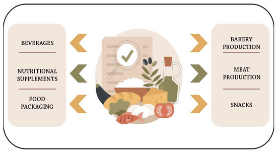 In recent years, there has been a significant increase in consumer interest in food products with functional properties [53]. Due to the extensive effects of bioactive peptides derived from oilseeds, they are more often analyzed for use in functional foods. In addition, the use of cakes in food, which are a by-product of oil production, as an alternative source of protein may ensure the management of waste from the food industry [15]. Moreover, products enriched with proteins of plant origin are good alternatives for vegans and people with dairy allergies [54]. Protein hydrolysates can be used in the production of protein-rich foods, i.e., protein drinks, protein-rich pasta, powdered drinks, infant and weaning foods, bars, or meat substitutes (Figure 2) [55,56,57,58,59].