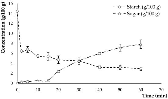 - Kumar, P.A.; Pushpadass, H.A.; Franklin, M.E.E.; Simha, H.V.V.; Nath, B.S. Effect of Enzymatic Hydrolysis of Starch on Pasting, Rheological and Viscoelastic Properties of Milk-Barnyard Millet (Echinochloa Frumentacea) Blends Meant for Spray Drying. Int. J. Biol. Macromol. 2016, 91, 838–845. [Google Scholar] [CrossRef] [PubMed]