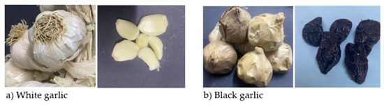 Fresh lean beef and beef fat were purchased from a local butcher (Erzurum, Türkiye). White garlic (WG) and black garlic (BG) were purchased from a commercial company (Taşköprü, Kastamonu, Türkiye) (Figure 1). Autochthonous Latiplantibacillus plantarum GM77 and Staphylococcus xylosus GM92 [13] were added to batters as starter cultures at levels of 107 and 106 cfu/g, respectively.