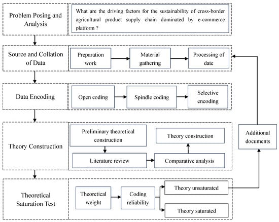 In view of the fact that the driving mechanism and realization path of sustainable development of cross-border agri-food product supply chain led by cross-border e-commerce platforms is an emerging field, which has not been fully studied, the theoretical foundation is relatively weak, and its internal laws and mechanisms need to be further explored. The grounded theoretical approach is precisely a seminal research method dedicated to the development of theoretical frameworks in emerging research areas [68]. It constructs new explanatory theoretical models by identifying the patterns and key elements of problems in a data-driven way through open, pivotal, and selective coding of raw primary data.