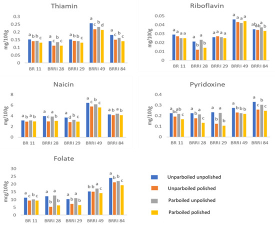 3.4. Parboiling and Polishing Effect on the Vitamin Content of Different Rice Varieties of Bangladesh