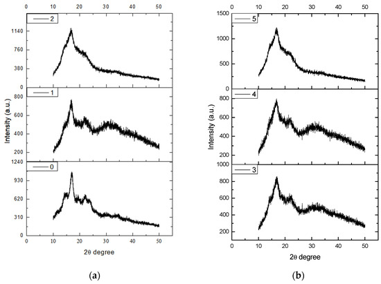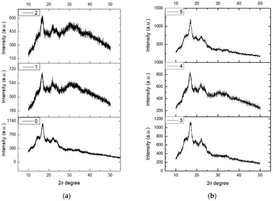 3.4. X-ray Diffraction Spectral Analysis of Starch Molecules Crystallinity