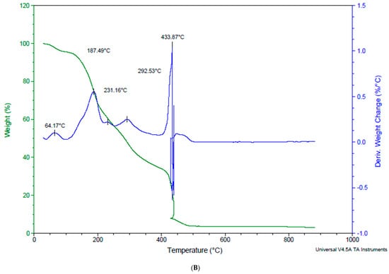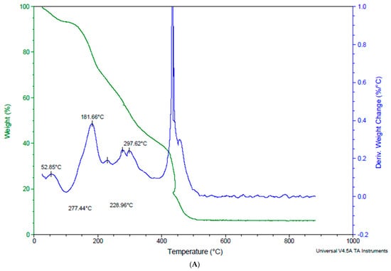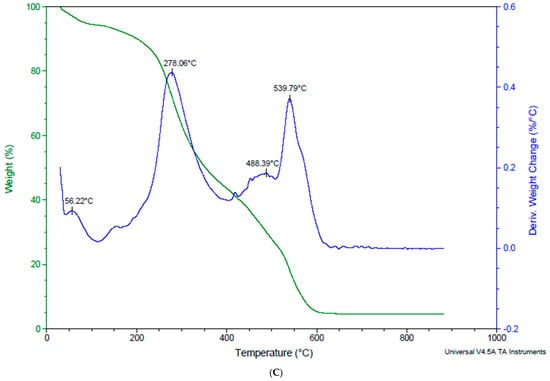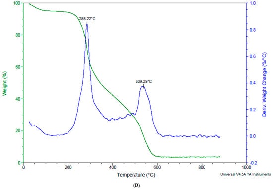 Mendes et al. [] proposed a technique for thermogravimetric analysis (TGA). The temperature range was set up to 900 °C and a heat rate of 10 °C/min in nitrogen.