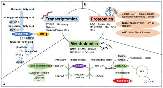 - High-throughput multi-omic technologies can verify each other. State-of-the-art omics technologies, including third-generation transcriptomics, ‘4D’ proteomics, and spatial omics, enable rapid identification, deep coverage, and high accuracy. Applying these advanced techniques in future meat quality studies is recommended.