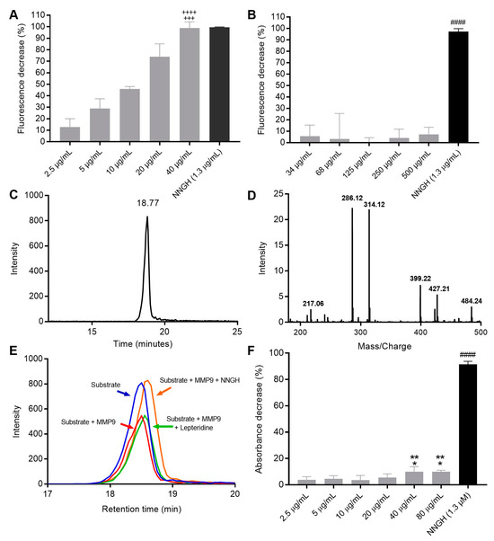 3.2. Fluorescence and Colorimetric Spectrometry Assessment of LepteridineTM’s Ability to Inhibit MMP-9 Activity