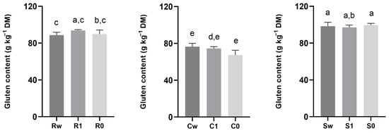 Gluten content (GC) and gluten index (GI) were determined by the Glutomatic System (Perten, Sweden) according to the AACC method 38-12 [21]. Data were expressed as grams per kilogram of dry matter (g kg−1 DM).