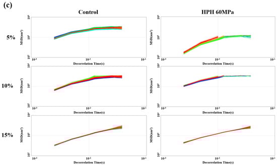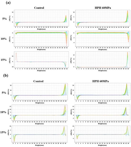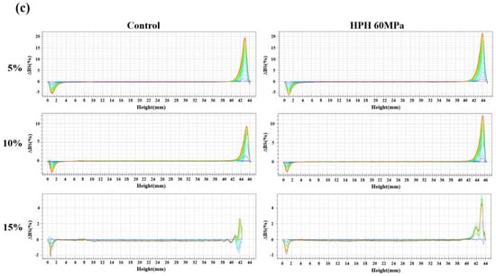 | Oil Phase Concentration (%, w/w) | Control | HPH 60 MPa | ||||