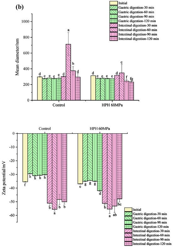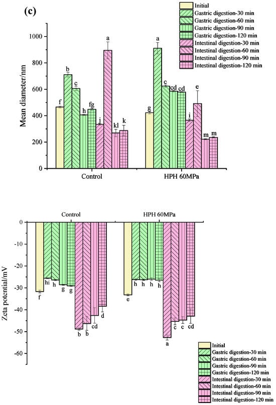 2.5.2. The Droplet Size and Zeta Potential of the Emulsions during In Vitro Digestion