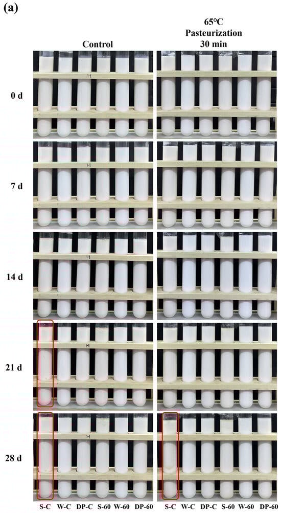 2.5. In Vitro Digestion Behavior Analysis of Dual-Protein Emulsions
