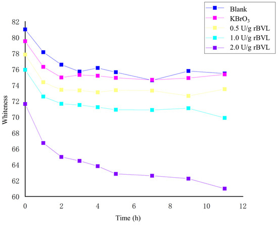 The whiteness of noodle samples prepared with the addition of KBrO3 or rBVL.