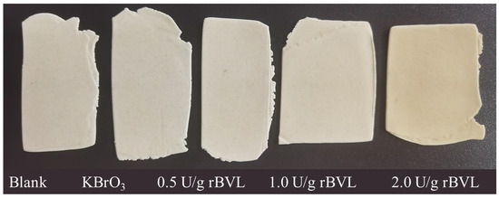 Different noodle samples prepared with the addition of KBrO3 or rBVL.
