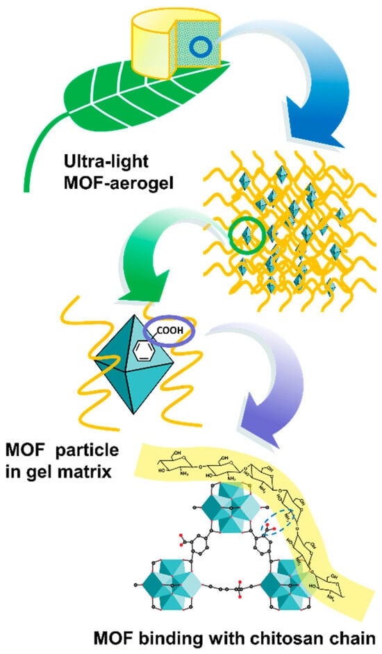 Schematic diagram of the multiscale structure in the MOF-aerogel.