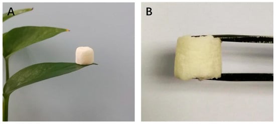 To meet the sustainable perspective, we further investigated the reuse performance of the MOF-aerogel-2 composite after oil bleaching. Continuous adsorption-desorption cycles were conducted at 100 °C using n-hexane and chloroform to remove the residual oil and carotenoid molecules from the composite particles after each test. As shown in Figure 10, MOF-aerogel-2 showed sustainable bleaching capacity (Figure 10A) and retained more than 40% of the removal proportion in the first two reuse cycles (Figure 10B). The reusability of the aerogel decreased to 39.9% in the fourth cycle, slightly lower than the performance of the unused CS-aerogel. Figure 11a shows the raw MOF-aerogel-2, and its counterpart after four reuse cycles is shown in Figure 11b. The MOF-aerogel-2 was ultralight and white. After five adsorption-desorption cycles, MOF-aerogel-2 was slightly yellow and maintained good mechanical strength, and the color could not be removed easily by organic eluents. This indicated that the carotenoid molecules were tightly bound to the binding sites within the MOF particle surfaces. These results suggested the mechanical strength of the porous structure and its remarkable sustainability for carotenoid bleaching. These outcomes demonstrated the efficacy of the carboxylic MOF-aerogel containing hierarchical porous structures for possible application in oil bleaching. In addition, the integration of MOFs and CS substrates endows not only sustainability to micro-sized MOF particles but also expands the application of chitosan.