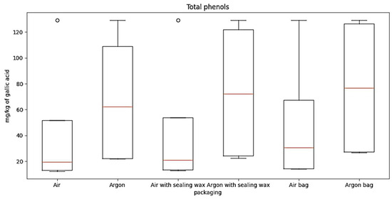Regarding total phenols data, processed through a boxplot (Figure 6), it is possible to observe the following information: