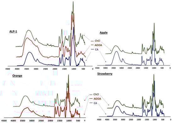 - Canteri, M.H.G.; Renard, C.M.G.C.; Le Bourvellec, C.; Bureau, S. ATR-FTIR spectroscopy to determine cell wall composition: Application on a large diversity of fruits and vegetables. Carbohydr. Polym. 2019, 212, 186–196. [Google Scholar] [CrossRef] [PubMed]