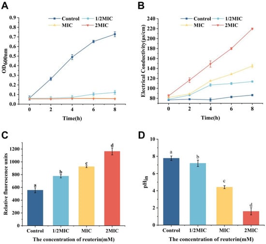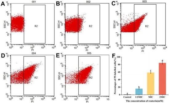 3.2. Effect of Reuterin on the Cell Membrane of S. aureus