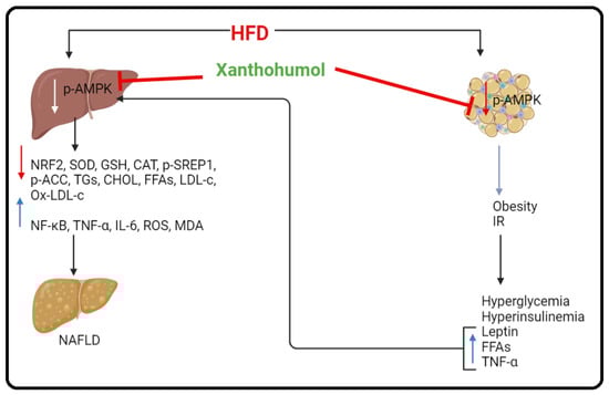 Therefore, in this study, we tested the hypothesis that chronic co-treatment with XH could alleviate NAFLD in high-fat-diet-fed rats by activating AMPK, which acts as an upstream mechanism to suppress lipogenesis, oxidative stress, and inflammation.